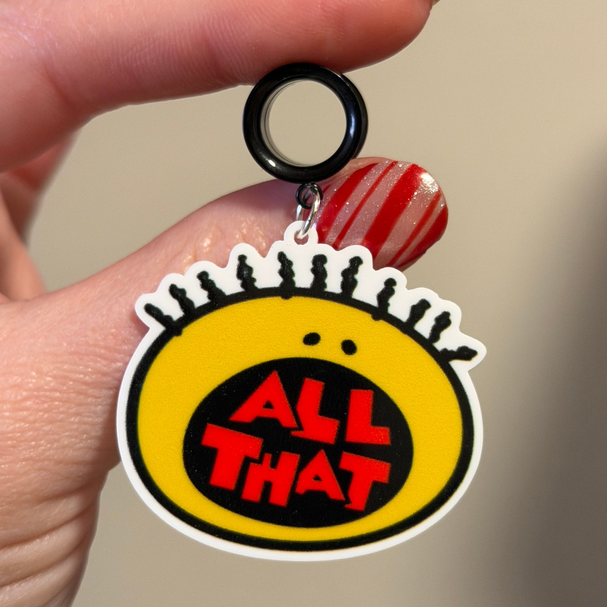 One pair of double flare surgical steel screw back tunnels with a fun All That dangle!