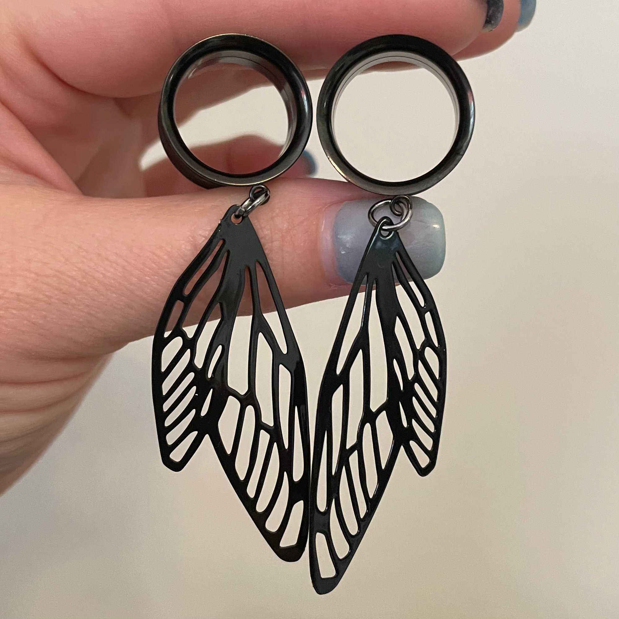 Black Butterfly Wing Tunnel Dangles (sizes 4g-2")