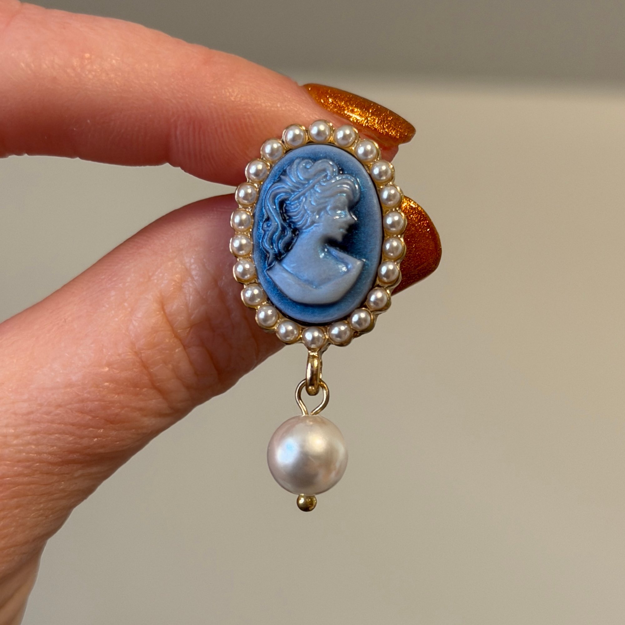 Blue Pearl Cameo Dangles (sizes 2g-5/8)