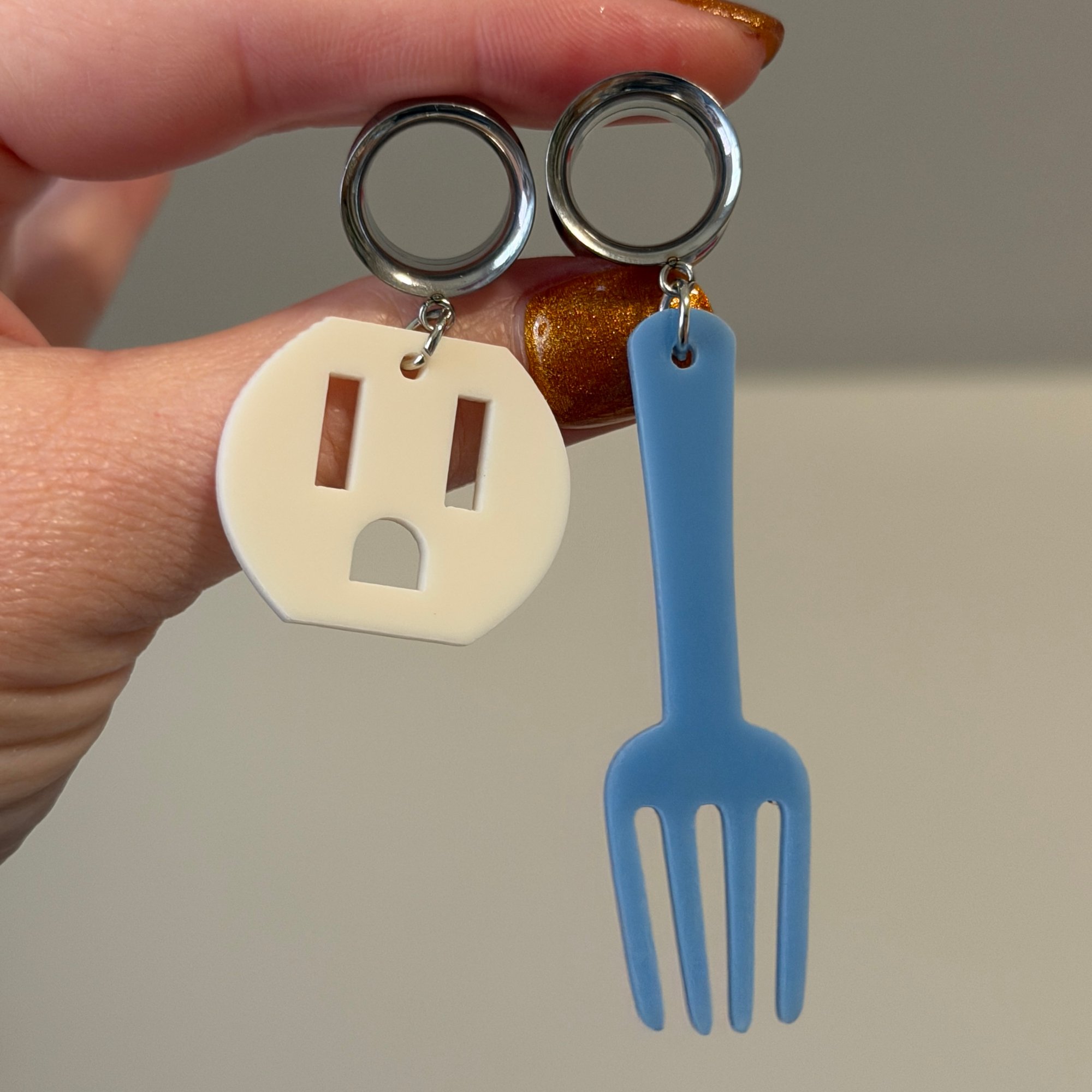 One pair of surgical steel saddles/tunnels with this funny fork and socket dangle!