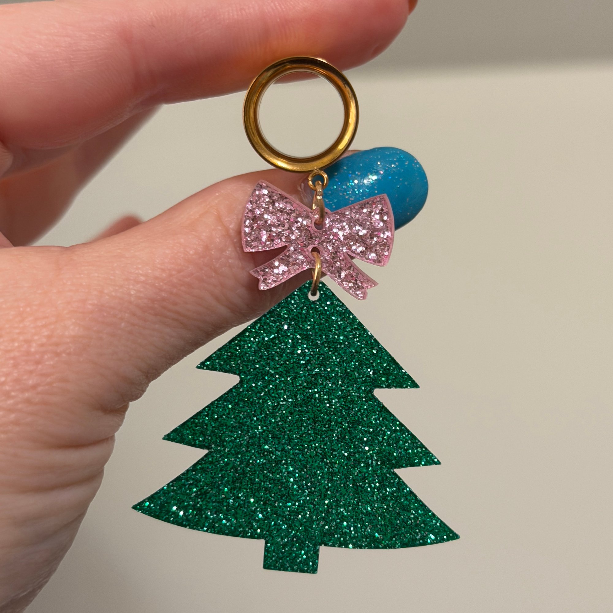 One pair of double flare surgical steel screw back tunnels with a cute glittery Christmas tree dangle!